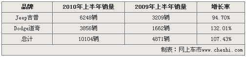 Jeep吉普和Dodge道奇兩大品牌在2010年上半年銷(xiāo)量已經(jīng)超過(guò)2009年全年的總銷(xiāo)量。2010年上半年Jeep吉普品牌車(chē)型銷(xiāo)量達(dá)6248量,較去年上半年增長(zhǎng)了94.7%。