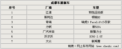 這屆成都車展上,既有國產(chǎn)車型又有進口車型首發(fā),其中江淮和斯柯達將發(fā)布運動版車型,而奇瑞、力帆和廣汽豐田分別發(fā)布瑞虎3小改款、新520、新雅力士三款改款車,而備受關注的沃爾沃XC60 2.0T也將在車展上市,預計售價在40-50萬之間。另外大眾新輝騰將在車展期間推出,新車除了搭載3.6L、4.2L和6.0L三款引擎之外,還將有3.0T渦輪增壓引擎推出。