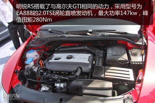 明銳RS搭載了與高爾夫GTI相同的發(fā)動(dòng)機(jī)和變速箱,動(dòng)力上采用EA888系列的2.0TSI渦輪直噴發(fā)動(dòng)機(jī),最大功率147kw,峰值扭矩280Nm,同樣匹配型號(hào)為DQ250的六速DSG雙離合變速器,這一動(dòng)力組合用在高爾夫GTI上的加速成績?yōu)?.1秒。