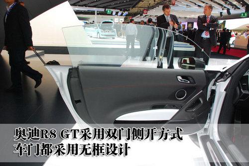 奧迪R8 GT采用雙門側(cè)開的方式,雖然不想蘭博基尼剪刀門式那樣拉風(fēng),但無框的設(shè)計(jì)依然在低調(diào)中蘊(yùn)藏著不羈的個(gè)性。奧迪R8 GT的車門內(nèi)側(cè)把手也采用輕量化材料打造,而且車門迎賓踏板上還印出了彰顯身份的字樣。