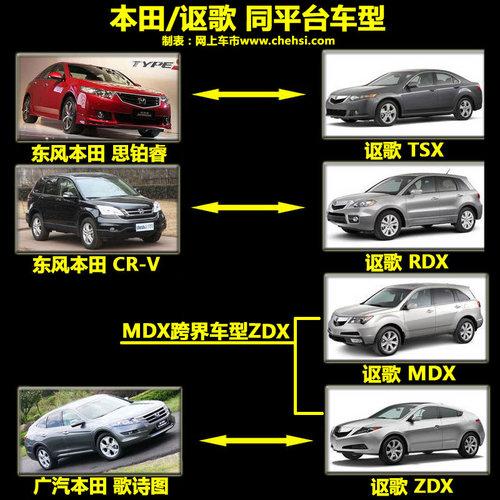 目前廣汽本田/東風(fēng)本田生產(chǎn)的部分車型都與謳歌車型同來自一個平臺。例如:東風(fēng)本田的高性能運動轎車思鉑睿就和謳歌TSX同平臺生產(chǎn)。同出一轍東風(fēng)本田的CR-V與謳歌RDX也存在同樣的關(guān)系。而即將上市的廣汽本田歌詩圖則是與謳歌MDX的跨界車型ZDX的平臺相同。廣汽本田歌詩圖上市后的價格明顯要比原裝引進謳歌ZDX的價格低,當(dāng)然也更容易被中國消費者所接受。