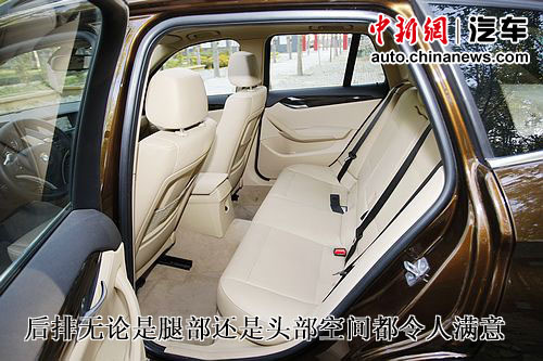 X1寬敞的內(nèi)部空間,無論前排還是后排,尤其在頭部空間上,都可以令人滿意。身為跨界車的X1,在此點上比起轎車的優(yōu)勢要明顯許多。而在乘坐或者駕駛的過程中又感覺不到SUV那種高大,對于公路行駛這樣的視線高度恰到好處,四周的視野非常不錯。
