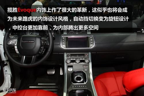 由于內(nèi)飾的圖片還沒有公布出來(lái),據(jù)猜測(cè)和三門版攬勝Evoque的內(nèi)飾風(fēng)格設(shè)計(jì)相同。至于配置方面,可能會(huì)有所調(diào)整,但是一些在三門版攬勝Evoque出現(xiàn)的配置將會(huì)延續(xù)到五門版車型上。譬如自動(dòng)泊車輔助系統(tǒng)、盲點(diǎn)監(jiān)控系統(tǒng)、停車預(yù)熱定時(shí)器裝置、無(wú)鑰匙進(jìn)入系統(tǒng)、可自動(dòng)調(diào)節(jié)的自適應(yīng)大燈系統(tǒng)、數(shù)字/衛(wèi)星電視與DVD播放系統(tǒng)、后座娛樂套件等豪華配置。