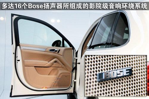 混動卡宴除了在性能上的出色表現(xiàn)以外,整車在舒適娛樂系統(tǒng)上也可謂達(dá)到了至上水準(zhǔn),16個Bose揚(yáng)聲器所組成的環(huán)繞音響系統(tǒng),可以讓你感受到影院般的聽覺感受。