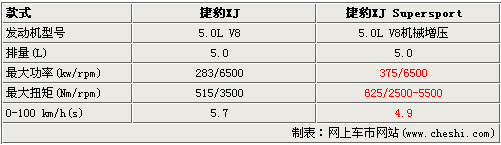 目前在售的捷豹XJ搭載的5.0L V8發(fā)動(dòng)機(jī),最大功率283千瓦,最大扭矩515牛米。而來自R系列車型的5.0L V8機(jī)械增壓發(fā)動(dòng)機(jī),最大功率達(dá)375千瓦,最大扭矩更是高達(dá)625牛米,0-100km/h加速也僅為4.9秒,捷豹XJ的動(dòng)力將更加強(qiáng)勁。