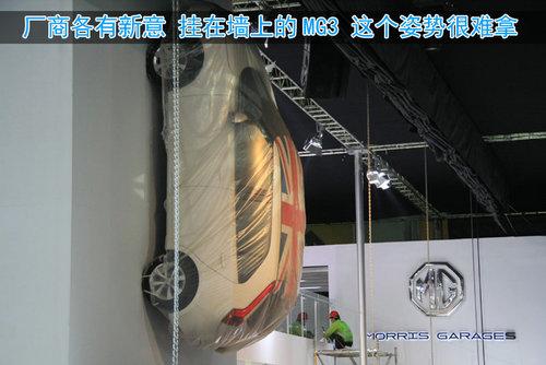 為了吸引觀眾的眼球,各個(gè)廠商也費(fèi)勁了心思布展,雪佛蘭看上了歷年MINI的絕招,就是把車掛在墻上,而Smart則直接將車擺上了房頂。這使我不得不去聯(lián)想下屆車展會(huì)不會(huì)倒掛在房頂上?車展吸引人的地方有很多,其中就包括我們?cè)谶@里可以親眼看到一些神車,例如我們眼前的尚酷R,這個(gè)版本在中國(guó)來(lái)說(shuō)目前沒(méi)有銷售。