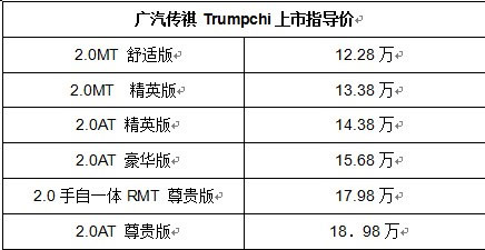 有媒體評(píng)論,廣汽傳祺Trumpchi上市發(fā)布會(huì)無論是地點(diǎn)的選擇、嘉賓的人數(shù)還是現(xiàn)場氣勢的營造,都創(chuàng)下了業(yè)界的多個(gè)第一,堪稱國內(nèi)有史以來規(guī)模最宏大的新車上市儀式。而12.28萬——18.98萬元極具競爭力的定價(jià),輔以完善的“加分服務(wù)”,使得廣汽傳祺Trumpchi一上市便成為中高級(jí)轎車陣營2.0L級(jí)別最具性價(jià)比優(yōu)勢的車型?梢灶A(yù)見的是,依托廣汽集團(tuán)強(qiáng)大的品牌號(hào)召力和品質(zhì)口碑,廣汽傳祺Trumpchi必將一炮而紅,成為中高級(jí)轎車市場的全新標(biāo)桿。