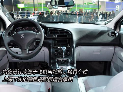 內(nèi)飾上,標(biāo)致3008內(nèi)飾設(shè)計來源于飛機駕駛艙,做工十分考究,上深下淺的顏色搭配顯得很溫馨,不過三幅方向盤沒有太多亮點。