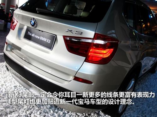 外觀方面全新寶馬X3外型延續(xù)了寶馬X系車型的特點,雖然X車系中往下有X1、往上有X5及X6,但新X3并不是縮小版的X5,很多獨有的外型特征,顯示出X3與眾不同的性格。