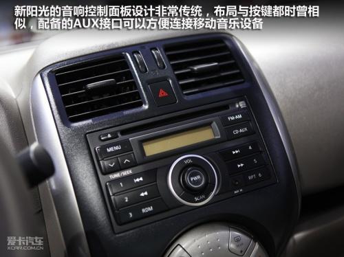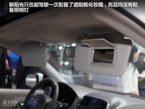 新陽光的音響控制面板設計十分傳統(tǒng),布局與按鍵都與現(xiàn)在主流的日產車型一致,并沒有什么新鮮感。倒是圓形的自動空調控制面板設計的非常可愛,是新陽光內飾的一大亮點,而且操作起來沒有任何難度。新陽光只有副駕駛位置配備了遮陽板化妝鏡,而且沒有配備照明燈,讓人有些不解。