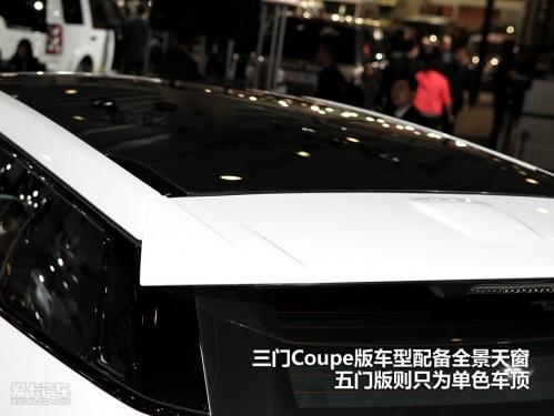 車頂采用懸浮式錐形設(shè)計,此處對整車展現(xiàn)的姿態(tài)起到了決定性的作用,令其風格與一些運動型跨界車型異曲同工,三門Coupe版車型配備全景天窗,五門版則只為單色車頂。