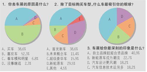 對廣州車展你感興趣嗎?車展上什么車最吸引你的眼球?本屆車展給你最深刻的印象是什么?上周,本報聯(lián)合新浪汽車進行了調查,結果顯示,大部分的讀者對汽車有著濃厚的興趣,而且對新車以及新能源車的關注度遠遠超過了明星車模。