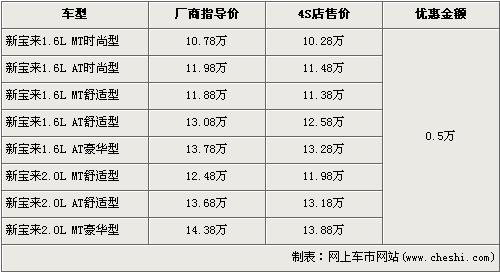 新寶來是一汽大眾于去年10月上市的新車型,新寶來共分為1.6L及2.0L兩個(gè)排量,全系車型多達(dá)7個(gè),價(jià)格區(qū)間為10.78萬元-14.38萬元。近期根據(jù)網(wǎng)上車市價(jià)格監(jiān)測系統(tǒng)顯示,新寶來全系優(yōu)惠5000元,具體車型價(jià)格詳情請看下表: