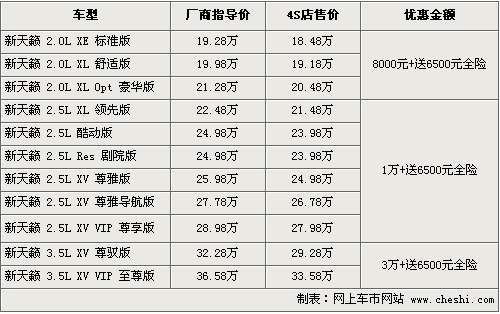 據(jù)4S店銷售人員介紹,目前新天籟全系車型可以贈送價值6500元左右的全險(xiǎn),其中還有現(xiàn)金優(yōu)惠。2.0車型現(xiàn)金優(yōu)惠8000元,2.5車型優(yōu)惠1萬元,而3.5車型則優(yōu)惠到了3萬元,累計(jì)優(yōu)惠幅度最高為3.65萬元。目前全系車型有黑色、紫色等可供消費(fèi)者選擇。