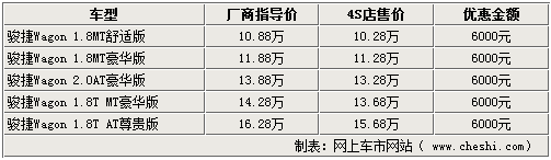 據(jù)銷售人員介紹,雖然兩款增壓版駿捷Wagon車型調(diào)價,但各店內(nèi)銷售的駿捷WAGON車型仍可給出1.1萬元的現(xiàn)金優(yōu)惠,店內(nèi)在售的主要為1.8L的手動版車型,而2.0L以及1.8T的車型較少,如需購買仍需提前預(yù)訂,訂金為5000元,一個月左右的時間即可提車。