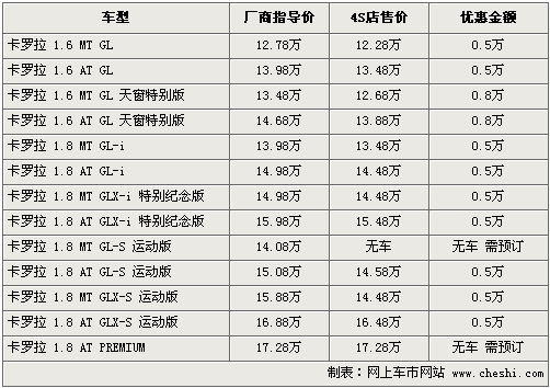 卡羅拉進(jìn)入國(guó)內(nèi)時(shí)間比較長(zhǎng),積累了一定的消費(fèi)人群,不僅國(guó)內(nèi),臺(tái)灣的消費(fèi)者對(duì)卡羅拉也是情有獨(dú)鐘。目前花冠EX和第十代卡羅拉共同銷售,在天窗特別版卡羅拉推出后,性價(jià)比方面有進(jìn)一步提升。目前4S店內(nèi)有現(xiàn)車供應(yīng),最高可優(yōu)惠現(xiàn)金8000元。