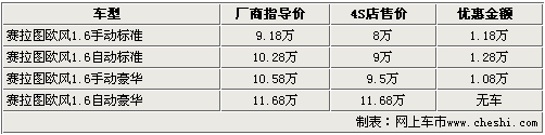 東風悅達起亞旗下的首款兩廂轎車—賽拉圖歐風,憑借著歐洲車型的設計理念和圓潤飽滿的外形,得到消費者的關注。近日記者了解到:賽拉圖歐風將推出1.5排量車型,屆時1.6車型將全部停產。根據網上車市價格監(jiān)測系統(tǒng)顯示,目前銷售的賽拉圖歐風最高優(yōu)惠1.3萬元。具體車型見下表:
