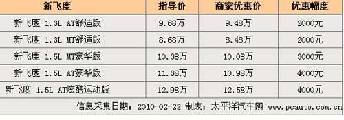 節(jié)日的喜慶氣氛慢慢退去,但車市的火爆程度卻依舊。近日筆者從北京地區(qū)廣汽本田4S店獲悉,飛度車型目前仍然貨源緊缺,現(xiàn)在預(yù)定最高可享受4000元的優(yōu)惠,詳細價格見下表: