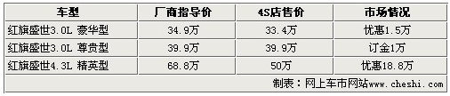據(jù)紅旗盛世4S店銷售人員介紹,很多紅旗汽車的愛好者一直很關(guān)注盛世的情況,到店看車的消費(fèi)者也多。目前紅旗盛世車型3.0L豪華型有少量現(xiàn)車,4.3L精英型僅有兩臺現(xiàn)車,3.0L尊貴型暫時沒有現(xiàn)車。如有意購買3.0L尊貴型可以預(yù)訂,訂金為1萬元,但是新車到店的時間不能確定。其他兩款有現(xiàn)車的車型均有不同幅度的優(yōu)惠,購買3.0L豪華型可享1.5萬的現(xiàn)金優(yōu)惠,4.3L精英型的降價幅度較大,達(dá)到了18.8萬,最終售價僅為50萬元。