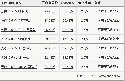 中級(jí)豪華車的標(biāo)桿-------新天籟全系采用了CVT無級(jí)變速箱,連續(xù)的動(dòng)力輸出雖然少了駕駛激情,但順暢的動(dòng)力輸出帶來了平順的駕乘感受,日產(chǎn)系列發(fā)動(dòng)機(jī)不錯(cuò)的抑噪能力也是很有群眾口碑的,配合新天籟寬大舒適的座椅,無論是駕駛還是乘坐,都是一種愜意的享受,商用和家用兩者皆可。近日根據(jù)網(wǎng)上車市價(jià)格監(jiān)測(cè)系統(tǒng)顯示,目前購買天籟最高可以享受到4.7萬元的價(jià)格優(yōu)惠,最低售價(jià)僅為17.88萬,具體車型售價(jià)見下表: