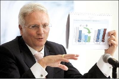 “兩年半前我們領(lǐng)先,兩年半后我們依然要領(lǐng)先!贝蟊娭袊偛梅栋驳侣冻鰬T有的自信笑容,這個52歲的德國男人如今已成為大眾在全球最成功的“封疆大吏”。大眾在兩年半前啟動的動力總成戰(zhàn)略將在明年年底前告一段落,按照目標(biāo),在所有先進(jìn)動力總成技術(shù)引進(jìn)后,大眾在華所有車型的平均油耗將比2005年減少20%。