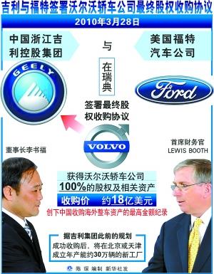 昨天晚上9時,紛紛擾擾許久的“吉沃戀”終于塵埃落定。中國浙江吉利控股集團(tuán)有限公司,與福特汽車公司簽署了最終股權(quán)收購協(xié)議,以18億美元收購瑞典沃爾沃轎車,這也是中國汽車業(yè)迄今最大的一筆海外并購案。瑞典副首相兼工業(yè)與能源大臣毛德·奧洛夫松和中國工業(yè)和信息化部部長李毅中出席了協(xié)議簽署儀式。