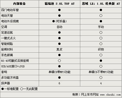 在內(nèi)部裝備上,兩款車各有特點。四門電動車窗、電動可調(diào)外后視鏡均為兩款車標(biāo)配。由于福瑞迪是頂配車型,所以定速巡航、真皮座椅、自動恒溫空調(diào)、電動天窗、智能鑰匙等配置較為齊全,而一鍵式點火在同級車車型中也比較少見。但單碟CD、后排座椅不可調(diào)相比缺少了一定的檔次。思域1.8經(jīng)典型雖然并未配備天窗,座椅為織布材料,后排座椅沒有帶中央扶手,但是后排座椅可以60:40可調(diào),這樣整車在空間的靈活性上就比較大,相比更加方便家庭使用。