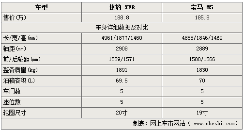 為了滿足豪華車的乘坐舒適,兩款車均增加了整車的長度及軸距,雖然令轉(zhuǎn)向半徑有所增加但是相應(yīng)的行駛穩(wěn)定亦有所提升。從外觀尺寸上來看,寶馬M5因軸距略遜于捷豹XFR而顯得車內(nèi)空間不夠寬裕。雖然在豪華以及性能表現(xiàn)上相差無幾,但從大尺寸輪轂的配置即可感受到XFR濃濃的運(yùn)動(dòng)氣息,更傾向于突出跑車特質(zhì)。