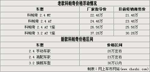 與此同時(shí),2010年開(kāi)始進(jìn)口雪佛蘭科帕奇在北京市場(chǎng)的售價(jià)都以穩(wěn)定的優(yōu)惠幅度進(jìn)行銷(xiāo)售。例如2.4升車(chē)型普遍優(yōu)惠一萬(wàn)元,實(shí)際售價(jià)僅為21.48-25.58萬(wàn);3.2升旗艦車(chē)型為30.28萬(wàn)優(yōu)惠幅度達(dá)到7萬(wàn)元。那么現(xiàn)款科帕奇在優(yōu)惠后的價(jià)格區(qū)間也恰好與內(nèi)部人士透露的新款車(chē)型上市后的價(jià)位區(qū)間相近。
