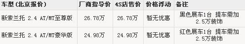 據(jù)進口起亞4S店銷售人員介紹,目前進口起亞索蘭托現(xiàn)車比較緊張,店內(nèi)只有2臺展車可出售,豪華版展車為紅色,至尊版展車為黑色。但提車需要加裝2.5萬元的裝飾,如果預訂需交定金1萬元,3個月左右時間可以提到車。如消費者有意購買,可到店進一步詳談。