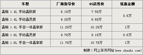 上海大眾斯柯達(dá)旗下的第二款車型晶銳已于去年12月22日上市,這款時尚、歐洲風(fēng)格鮮濃的特色小車共有1.4L、1.6L兩種排量共5個車型在售,售價區(qū)間為8.19萬元-11.79萬元。近日據(jù)網(wǎng)上車市網(wǎng)站價格監(jiān)測系統(tǒng)顯示,斯柯達(dá)晶銳全系最高的優(yōu)惠從6000元升到了1萬元,具體車型價格請看下表:
