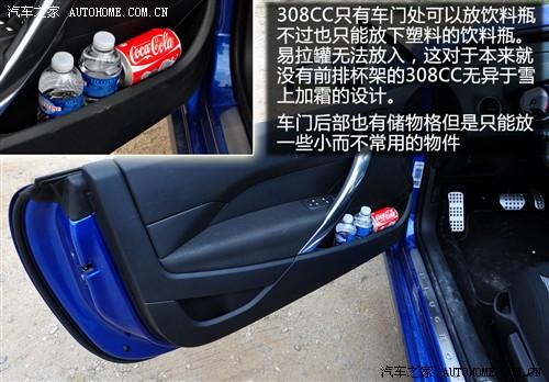 至于儲(chǔ)物空間308CC可謂是吝嗇到了極點(diǎn),全車只有門板上面的儲(chǔ)物格可以放下水瓶,如果不嫌費(fèi)事中央扶手箱也可以放下小瓶礦泉水喝可樂(lè),副駕駛的選擇會(huì)多一種,因?yàn)槭痔紫鋬?nèi)還可以滿滿的塞下五瓶礦泉水,另外手套箱內(nèi)還有一個(gè)空調(diào)出風(fēng)口,長(zhǎng)途駕駛可以喝到比室溫低的水。