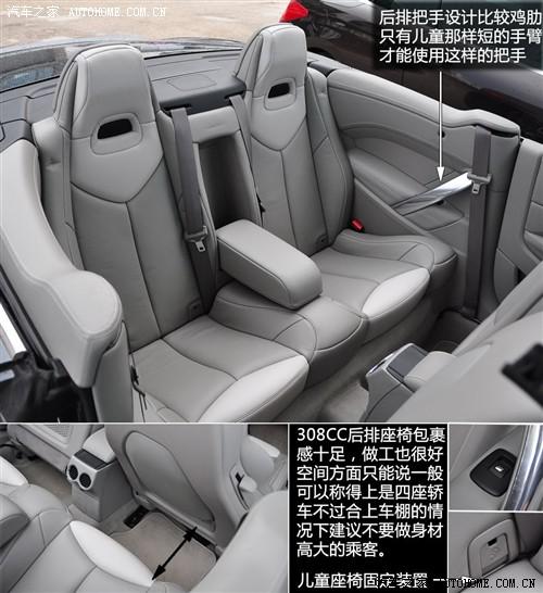 308CC繼承了307 CC的空間設(shè)計(jì),可以稱得上是一款標(biāo)準(zhǔn)的四座硬頂敞篷轎車,不過(guò)在閉合硬頂?shù)臅r(shí)候后座只適合中等身材以下的乘客乘坐。對(duì)于這種個(gè)性轎車能夠順利容下四個(gè)人我們已經(jīng)感到欣慰了。
