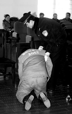 昨天9時(shí)30分,劉平被帶入法庭時(shí),向旁聽席上的死者家屬和劉母深深鞠一躬,并大聲說“對不起!”