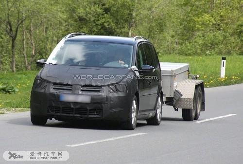 最近諜照記者首次在大街上拍到了下一代大眾途安測試車的照片,在它的后面還掛了一輛拖車。