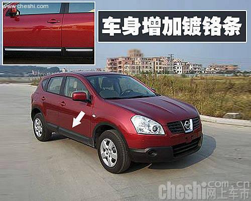 自9月28日起,東風日產(chǎn)將正式投產(chǎn)CVT變速器,因此搭載國產(chǎn)變速箱的新逍客由于成本的降低,其售價也有望相應(yīng)下調(diào)。據(jù)該人士介紹:新款逍客不僅采用了國產(chǎn)的CVT變速箱,而且在車輛外觀方面還增加了鍍鉻裝飾條和前后裝飾配件。下面就根據(jù)網(wǎng)上車市獨家得到的新車諜照,來搶先了解一下新款逍客。