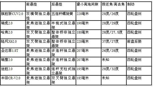 SUV車主要的任務不是去真正的越野探險,在提供舒適的前提下,它只需具備一定的通過能力,從這些SUV車的懸掛就能看出這一點。在這一點上,表格中的8款SUV車,除了陸風的X6在性能上偏向越野車之外,其余各款車型,均以追求舒適為主。