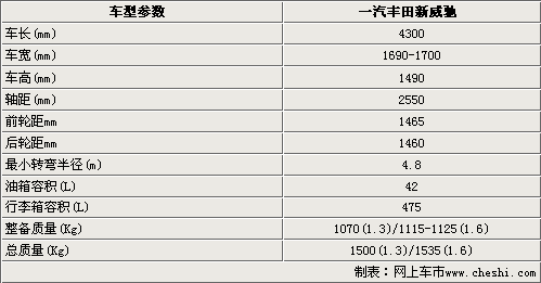 一汽豐田的A0級小車威馳,被豐田汽車公司稱為是“專門為中國設(shè)計的全新車型”。豐田新威馳于08年正式推出,主要目標(biāo)消費(fèi)群體為80后的年輕人,其“生而簡酷”的特性已在年輕人群中引起極大反響。近日我們從豐田內(nèi)部人士處獲悉到,豐田威馳即將小改款,同時我們在第一時間得到改款后新威馳的圖片和車型參數(shù)。新款威馳在外形設(shè)計上將更加硬朗,與家族老大哥凱美瑞有幾分相似,在舒適配置上也會更加豐富,在車身尺寸和動力系統(tǒng)方面與目前銷售車型相同。