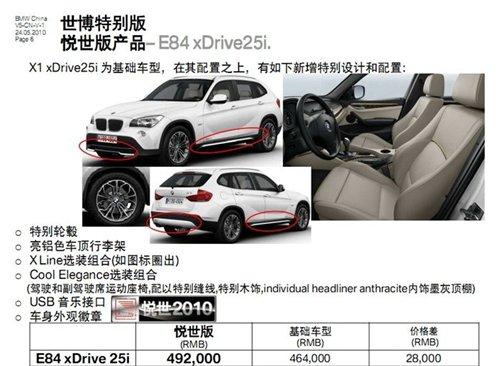 寶馬X1 xDrive25i悅世版 | 49.20 | 個性化輪轂、運動套件、世博徽標 |