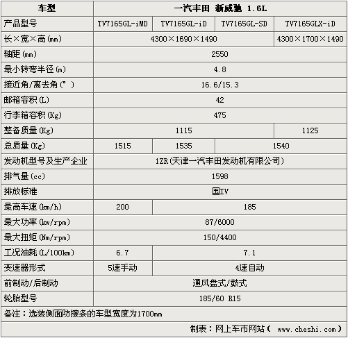 新威馳同樣搭載了豐田最新的4缸16氣門vvt-i發(fā)動機,在排放上也達到了國IV標準,該發(fā)動機具有可變正時氣門技術,這樣可使這款小車油耗更為經(jīng)濟,1.3L手動擋的百公里油耗僅為6.4升。另外新威馳低配車型還可選配天窗,這樣一來,消費者可根據(jù)自身需求來進行購車的選擇,比較人性化。說到這里,我們只是希望新威馳的定價不要像老款那樣過高,如果新威馳頂配的價格超過了11萬,相信許多消費者都會望而卻步,另選新歡了。