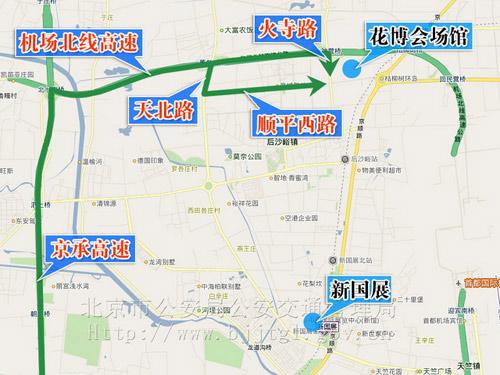 (一)由京承高速路經(jīng)機(jī)場北線高速路、火寺路出口、火寺路;或由機(jī)場北線高速路天北路出口經(jīng)天北路、順平西路至花博會場館自駕車停車場。