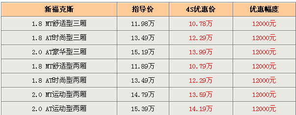 筆者日前走訪(fǎng)北京長(zhǎng)安福特4S店時(shí)獲悉,目前新?怂箖(yōu)惠又提升2000元,全系優(yōu)惠1.2萬(wàn)元,由于新嘉年華的上市,商家為了留出庫(kù)存故加大了新?怂沟淖尷