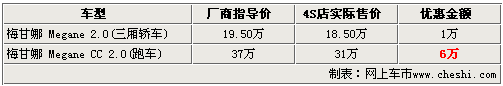 與雪鐵龍、標(biāo)致同為法系知名汽車制造商的雷諾,以進(jìn)口方式引進(jìn)國內(nèi)的車型有風(fēng)景、梅甘娜以及拉古娜等多款車型。其中梅甘娜車型分為三廂版本和跑車兩個(gè)版本。近日根據(jù)網(wǎng)上車市價(jià)格檢測系統(tǒng)顯示,梅甘娜全系車型均出現(xiàn)了價(jià)格松動(dòng),三廂普通版車型可優(yōu)惠1萬元,而跑車版梅甘娜的優(yōu)惠幅度達(dá)到6萬具體車型售價(jià)見下表: