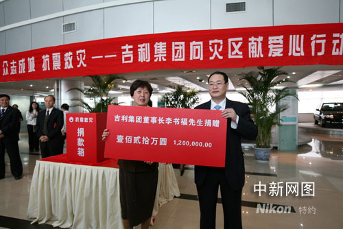 中新網(wǎng)5月14日電 5月12日汶川巨震,震動(dòng)全國。吉利集團(tuán)在第一時(shí)間展開了專題會(huì)議,聯(lián)合開展捐車、捐錢、獻(xiàn)血活動(dòng),攜經(jīng)銷商、供應(yīng)商首批捐款突破千萬。其中吉利集團(tuán)董事長李書福當(dāng)場(chǎng)個(gè)人捐款120萬元,四川省駐浙辦事處領(lǐng)導(dǎo)參加并接受了吉利對(duì)災(zāi)區(qū)的捐款。