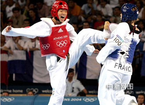2004年,在雅典法里羅海濱區(qū)奧林匹克體育館內(nèi),陳中與法國選手巴維熱的巔峰對(duì)決正在展開。經(jīng)過三個(gè)回合的鏖戰(zhàn),陳中以12比5的絕對(duì)優(yōu)勢戰(zhàn)勝對(duì)手,衛(wèi)冕成功,為中國代表團(tuán)在雅典奧運(yùn)會(huì)跆拳道項(xiàng)目中奪得第二枚金牌。也成為世界上首位兩奪跆拳道奧運(yùn)金牌的運(yùn)動(dòng)員,真可謂大快人心!