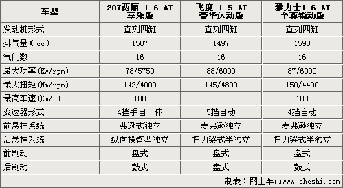 標(biāo)致207、新飛度和雅力士這三款車型均搭載的是直列四缸發(fā)動(dòng)機(jī),在排量方面存在著略微的差距。標(biāo)致207和雅力士由于排量較大,所在動(dòng)力輸出上要優(yōu)越于新飛度。在發(fā)動(dòng)機(jī)技術(shù)方面三款車型均運(yùn)用了各家的最先進(jìn)技術(shù),標(biāo)致207的1.6升發(fā)動(dòng)機(jī)為標(biāo)致307標(biāo)配的高性能發(fā)動(dòng)機(jī),本田的i-VTEC和豐田的雙VVT-i技術(shù)均可以使發(fā)動(dòng)機(jī)在具有良好節(jié)油性能的同時(shí)得到最大的動(dòng)力輸出。剎車系統(tǒng)飛度運(yùn)用了具有良好散熱性能的前后盤式剎車,而標(biāo)致207和雅力士則還是小型車上常見(jiàn)的前盤后鼓式剎車。