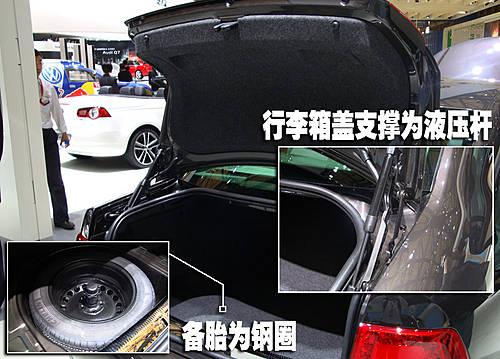 帕薩特領(lǐng)馭的行李箱蓋支撐方式是兩側(cè)的液壓支桿,雖然可以通過(guò)鑰匙實(shí)現(xiàn)遙控解鎖,但是這種設(shè)計(jì)并不能完全打開(kāi)行李箱蓋。該車(chē)所配備的備胎為一條配有鋼輪轂的備胎。