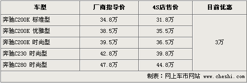 筆者從奔馳北京地區(qū)經(jīng)銷商處了解到,目前奔馳C級(jí)全系優(yōu)惠現(xiàn)金3萬(wàn)元,C200K標(biāo)準(zhǔn)型優(yōu)惠售價(jià)僅為31.8萬(wàn),C230優(yōu)惠后僅售39.8萬(wàn),C280時(shí)尚型優(yōu)惠后售44.8萬(wàn)元。目前4S店內(nèi)有銀色、黑色等款現(xiàn)車供應(yīng),消費(fèi)者可以到店試乘試駕,感受這款車的性能。