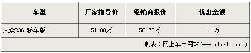 進口大眾PASSAT R36車型已經(jīng)在全國正式上市了,不過對于這樣一款B級性能車型,國內(nèi)的消費者估計還需要一個認識的過程。以免落入又一個改款領(lǐng)馭的錯覺中。近日,編輯從廣州地區(qū)的一家進口大眾經(jīng)銷商處了解到,現(xiàn)在此店內(nèi)的PASAAT R36車型的三廂版,顏色均為黑色,目前購買有1.1萬元的優(yōu)惠,而旅行版則需要預(yù)訂,大概需要三個星期的時間,目前沒有現(xiàn)金優(yōu)惠。具體價格如下: