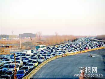 京津塘高速遭遇返京高峰 車流擁堵六七公里